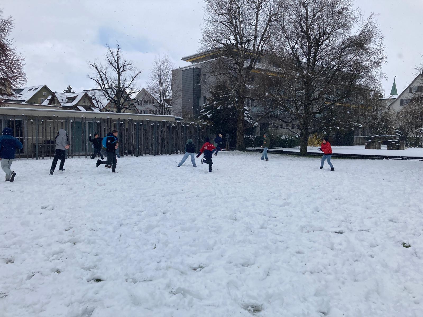 Gemeinsam besuchte die 1. Oberstufe am 31. März in Gossau eine starke Lesung von Autor Carlo Meier in der Stadtbibliothek. Die Exkursion gehörte ebenfalls zum Rahmen des aktuellen Leseprojektes mit Büchern aus dem Da Bux Verlag. Da die Bücher des Verlags in Gossau von der Cavelti AG gedruckt werden, besuchten die Klassen am Nachmittag die Druckerei Cavelti und erhielten einen spannenden Einblick in die verschiedenen Berufe der Druckereibranche. Als Auflockerung gab es während der Mittagspause eine kleine Schneeballschlacht.